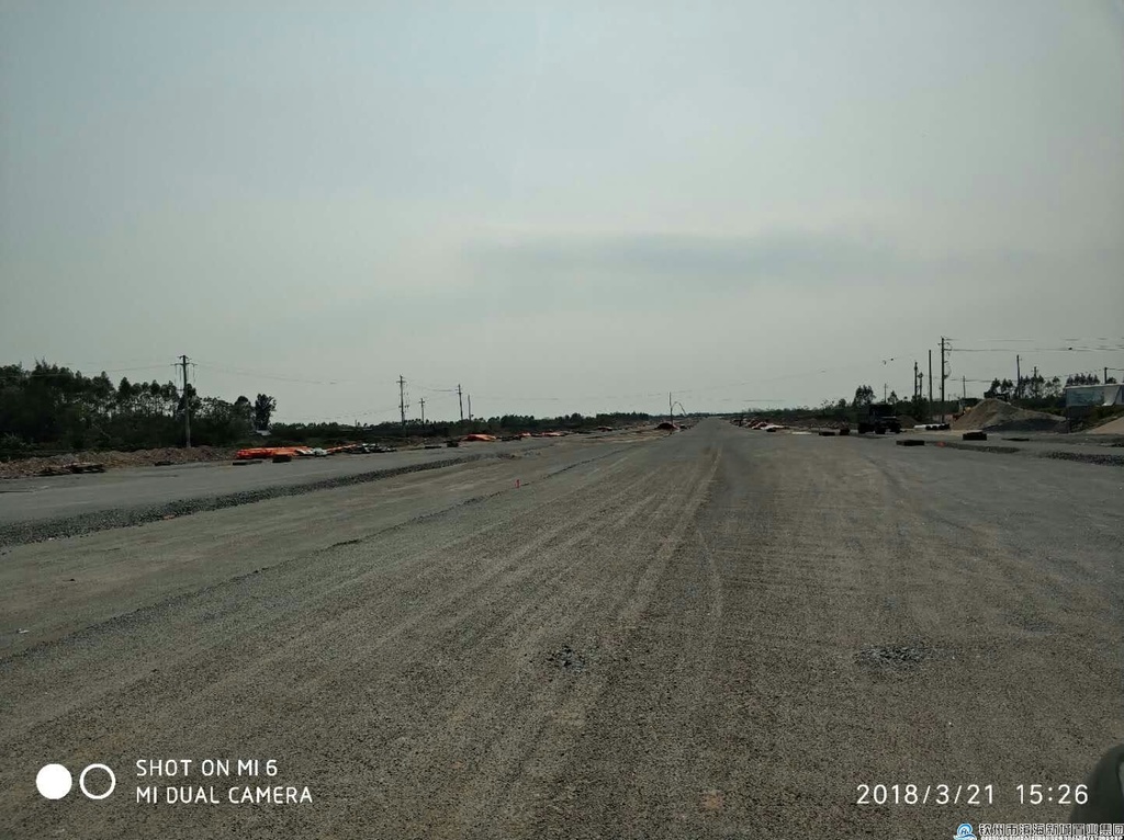 該項(xiàng)目于2017年2月22日進(jìn)場施工,道路約1060m,路寬60m。主要建設(shè)內(nèi)容:道路工程、交通工程、排水工程、照明工程和綠化工程等。合同價59958018.42元,工期200日歷天,行車道及非機(jī)動車車道級配碎石鋪設(shè)約90%,k2+200及k1+900處過路管全包施工。雨、污水管網(wǎng)基本建成,行車道及非機(jī)動車車道級配碎石鋪設(shè)約90%。施工單位中余建設(shè)集團(tuán)有限公司,監(jiān)理單位廣西益建工程建設(shè)監(jiān)理有限責(zé)任公司。