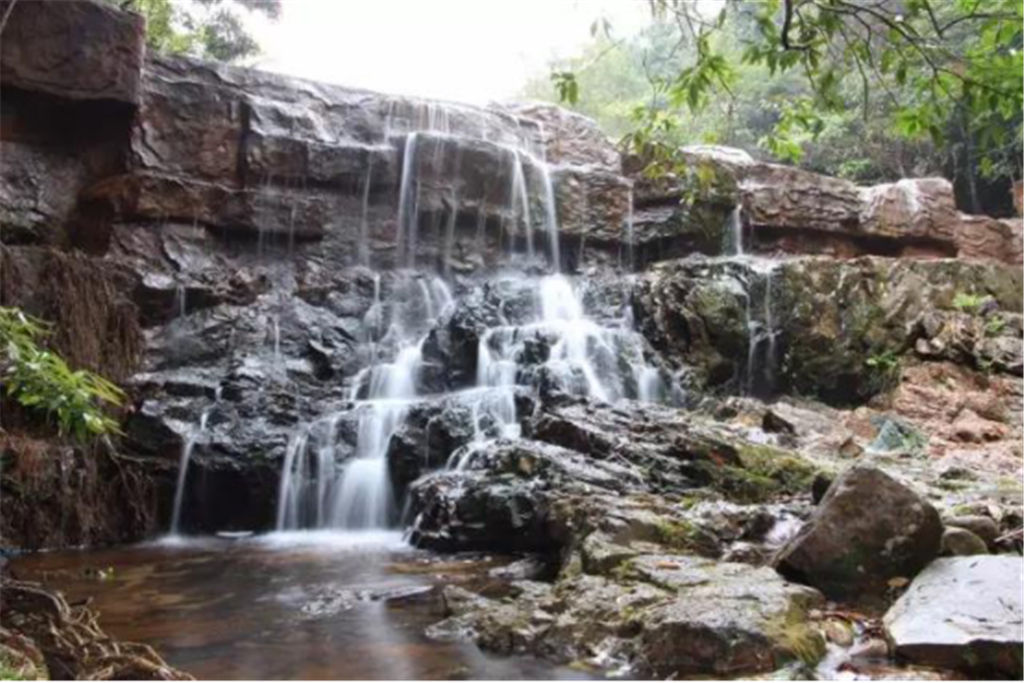 豐水期,遠(yuǎn)遠(yuǎn)的未見其水,便聞其聲,隆隆的水聲如雷鳴般響徹山谷,清澈的山泉水順著山勢歡快地奔騰而下,水流沖落在瀑布下的巖石上,飛濺起粒粒的水珠,銀白閃亮,就像晶瑩的珍珠正在翻滾跳躍。