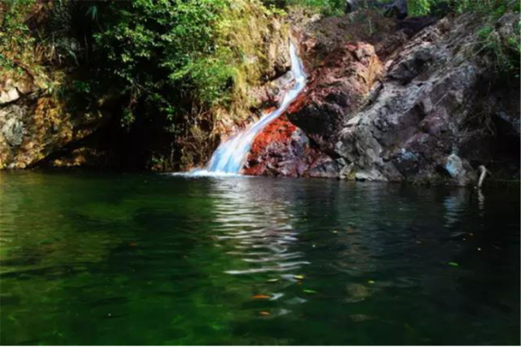 走進(jìn)山林200多米左右,我們便到達(dá)了牛郎織女橋。清澈的溪流,依稀可見魚兒在追逐嬉戲;徐徐山風(fēng)的吹過,更使人感到神清氣暢。要不是前面有更好的美景吸引著,我們真想就駐足在這里,投身于她的懷抱之中了??邕^牛郎織女橋,道路開始變得崎嶇,樹林也越來越茂密,雜花生樹,綠葉蔽日,使得原本并不見得寬的道路顯得更加狹小。 道路旁,一邊是林羅分布著的鐵柃格、湖榕木等數(shù)十種珍稀樹種,以及金銀花、黃杞子、枸骨藤等上百種珍稀藥材,另一邊則是清清的泉水時而從石板上匯成瀑布,時而從石隙間潺潺流過,景色十分誘人。