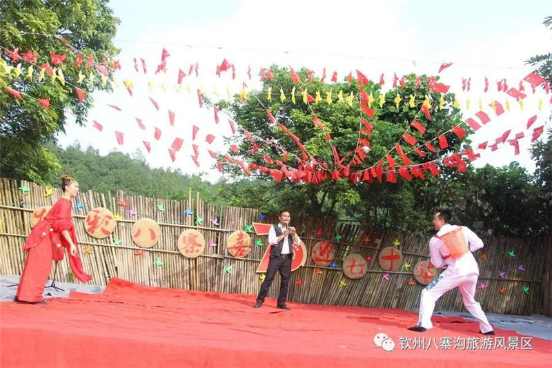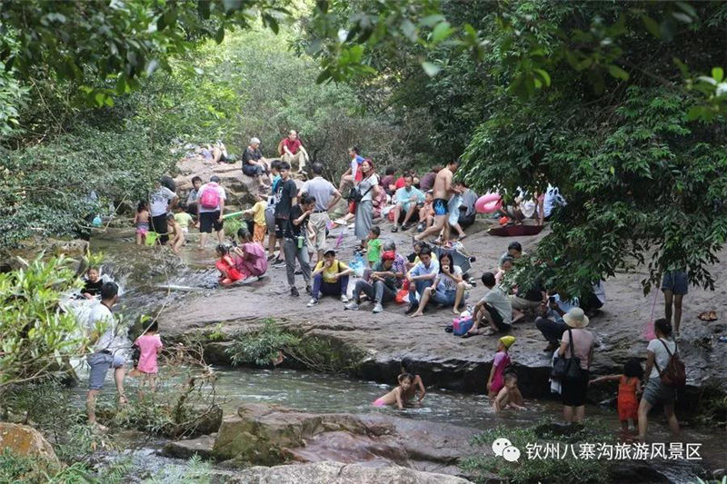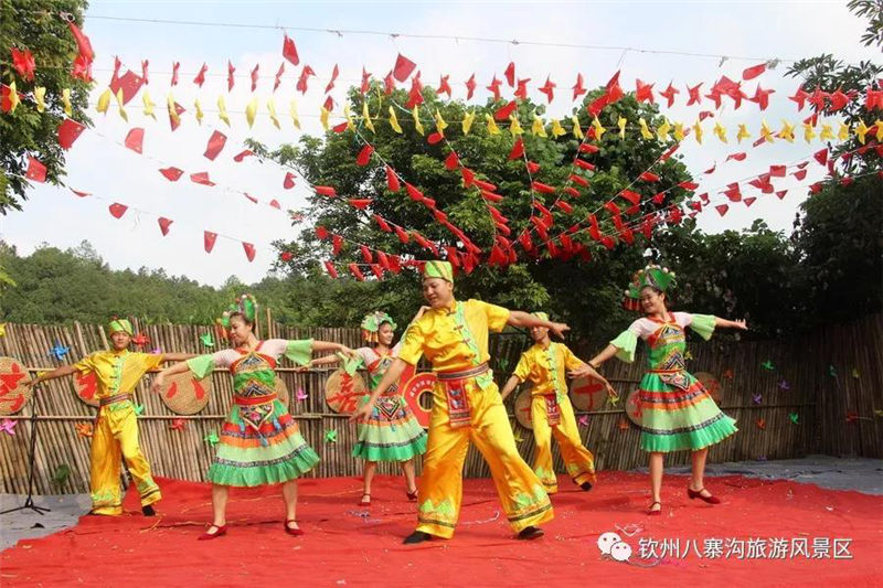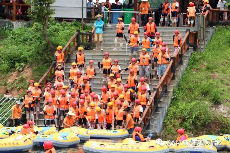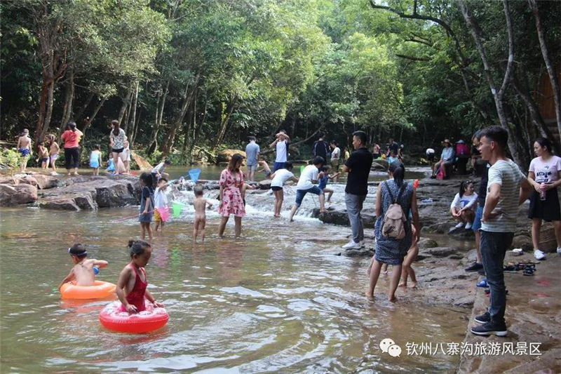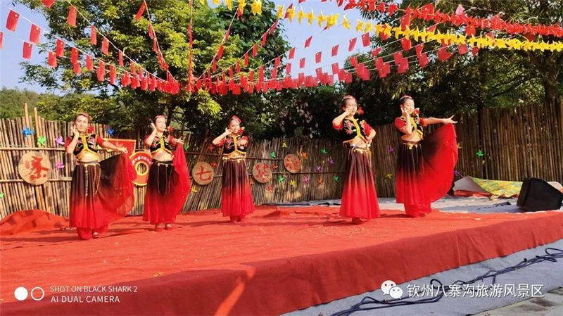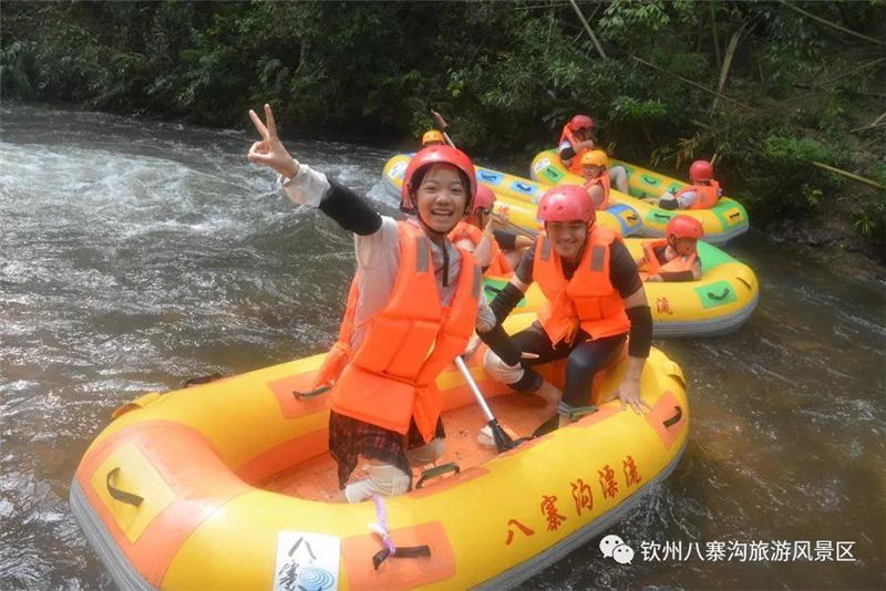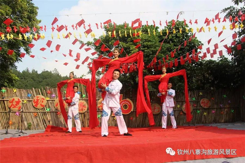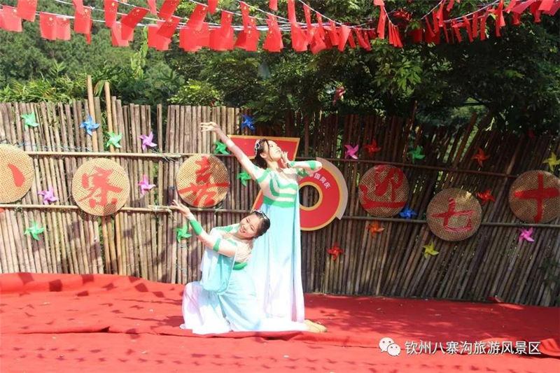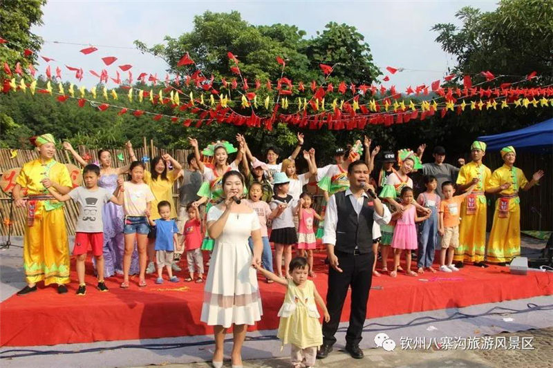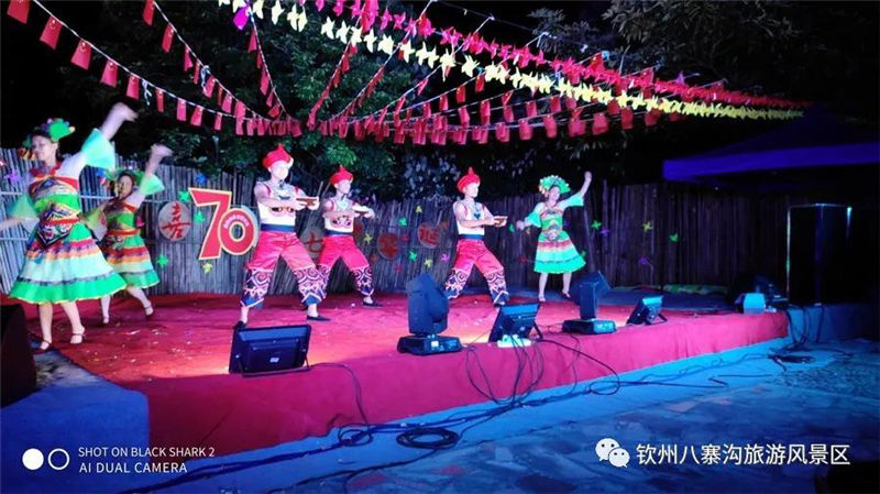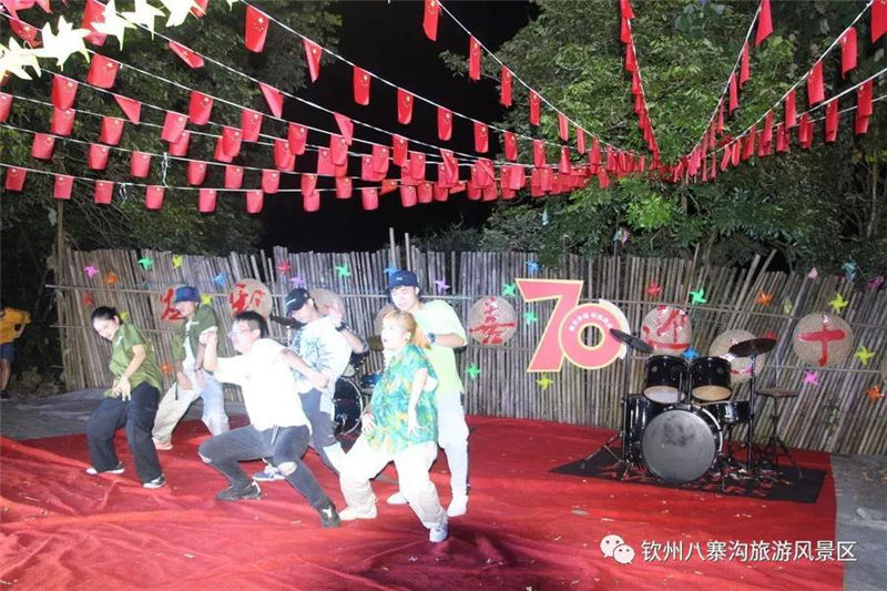 國慶期間景區(qū)舉辦以“炫彩八寨喜迎70華誕”為主題活動(dòng),受到眾多游客親睞。游客們白天可以觀看精彩歌舞文藝演出,賞彩虹風(fēng)車展,玩真人CS運(yùn)動(dòng),體驗(yàn)欽州第一漂的八寨溝森林漂流,登山泡山泉潑水狂歡,徒步暢游原始森林的美景,呼吸天然氧吧里的新鮮空氣,整個(gè)景區(qū)呈現(xiàn)一片游客如織、喜樂融融的景象。