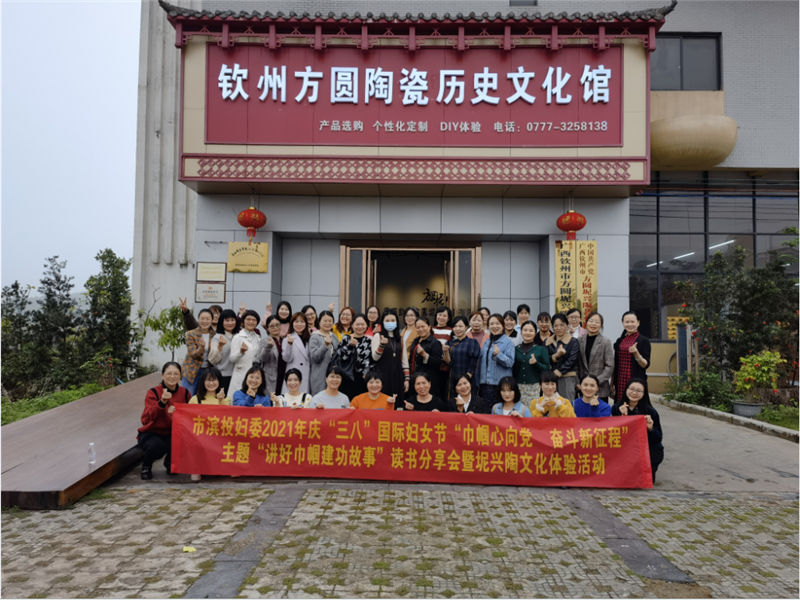 2021年3月8日,欽州市濱海新城投資集團(tuán)有限公司婦委會圍繞“巾幗心向黨,奮斗新征程”主題,組織開展2021年慶“三八”國際勞動?jì)D女節(jié)“講好巾幗建功故事”讀書分享會暨坭興陶文化體驗(yàn)活動,活動在欽州方圓陶瓷歷史文化館舉行。