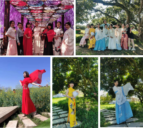 素質(zhì)拓展過后,婦委會開展了濱海巾幗別樣“美” 的游園展風采活動。女職工紛紛換上古色古香的漢服、旗袍,前往花的海洋感受春的氣息,進行賞花、合影,將煩惱與壓力釋放在花香鳥語中。