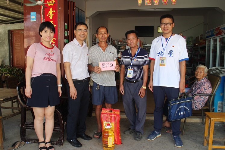 為紀(jì)念建黨97周年,弘揚(yáng)黨的光榮傳統(tǒng)和優(yōu)良作風(fēng),充分體現(xiàn)黨組織對(duì)基層黨員的關(guān)懷和愛護(hù),6月28日上午,集團(tuán)公司黨委副書記覃世金同志組織部分黨員干部來(lái)到幫扶村—靈山縣伯勞鎮(zhèn)新禾村,開展集團(tuán)公司“七一”慰問生活困難黨員、老黨員和村干部活動(dòng),為他們送去慰問金和慰問品。