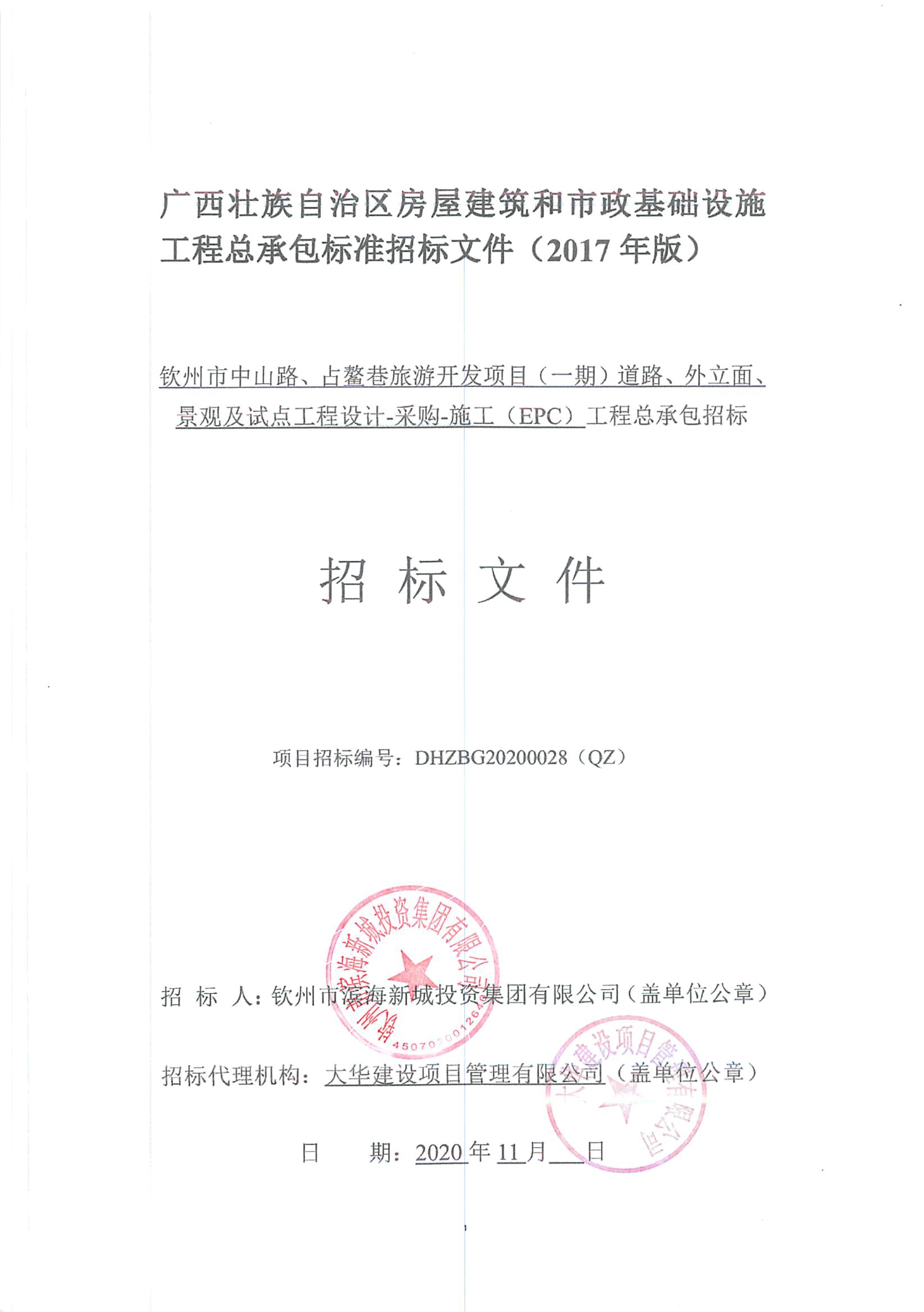 欽州市中山路、占鰲巷旅游開發(fā)項目(一期)道路、外立面、景觀及試點工程設(shè)...
