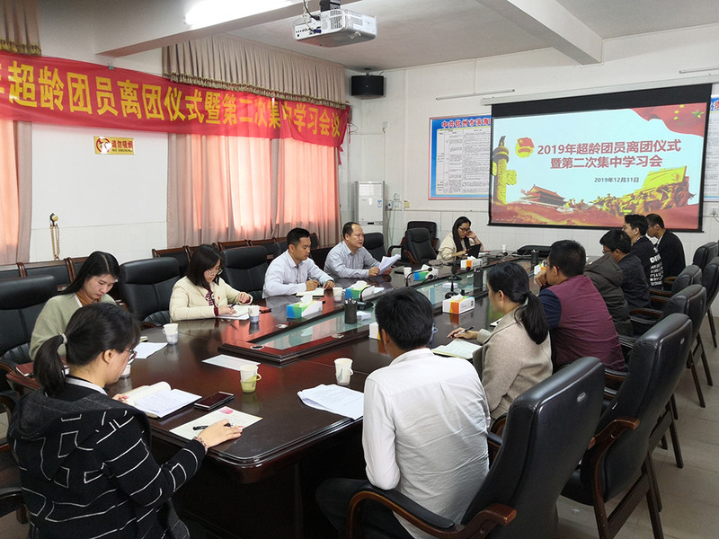 2019年12月31日下午,集團(tuán)公司團(tuán)委召開2019年超齡團(tuán)員離團(tuán)儀式暨第二次集中學(xué)習(xí)會議,集團(tuán)公司副總經(jīng)理?xiàng)钚聴澩?、集團(tuán)公司團(tuán)委委員及全體團(tuán)員參加本次會議,會議由團(tuán)委書記黃耀世主持。