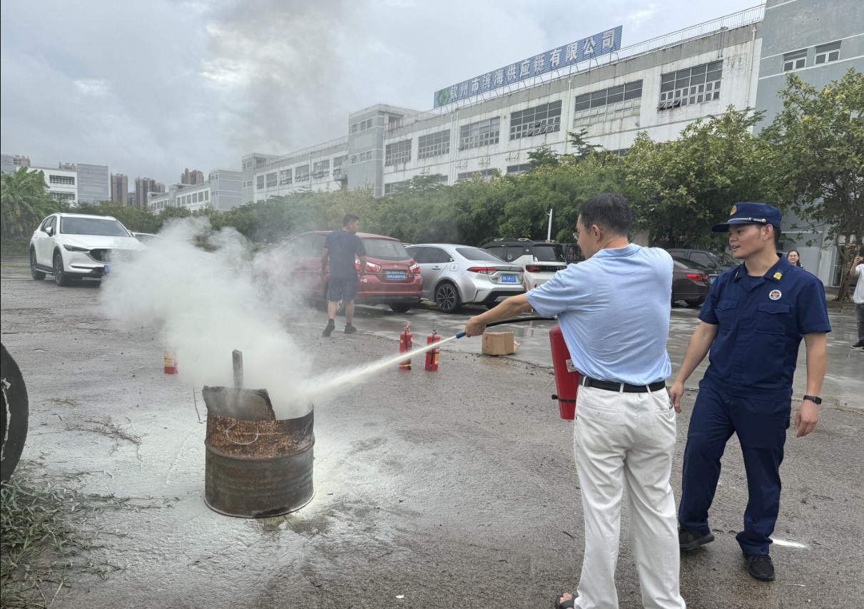 活動邀請欽州市欽南區(qū)河東消防救援站指導員劉振先同志進行消防知識培訓及警示教育講座,并現(xiàn)場以濱海供應鏈集采集配中心為消防示范案例,為大家講解倉儲場所防火要點,帶領大家學習消防水帶、滅火器材的使用方法。