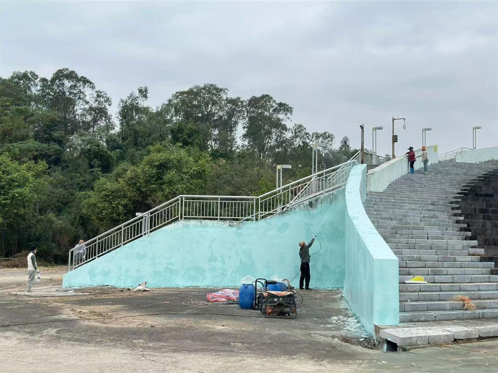 此次場(chǎng)地清理工作涉及范圍廣泛,涵蓋了活動(dòng)核心區(qū)域及周邊地帶。從布滿雜草的沙灘場(chǎng)地到零散分布的各類垃圾,清理團(tuán)隊(duì)分工明確、配合默契,有條不紊地推進(jìn)著每一項(xiàng)清理任務(wù)。目前共累計(jì)清理各類垃圾雜物百余噸,其中包括廢棄的蠔殼、塑料垃圾、漂浮物、雜草等。人工配合機(jī)械打草約43000㎡,機(jī)械平整場(chǎng)地約3100㎡,更換塑木生態(tài)板113㎡,墻面噴漆約1000㎡,清洗水池約2900㎡,維修廁所一座,安裝化糞池兩個(gè),拉電纜約1200米,做到了主會(huì)場(chǎng)全部通水通電,使海灘恢復(fù)了自然整潔的風(fēng)貌,完善了蠔情廣場(chǎng)的交通指示標(biāo)志,為蠔情節(jié)期間的海灘活動(dòng)提供了安全舒適的場(chǎng)地。