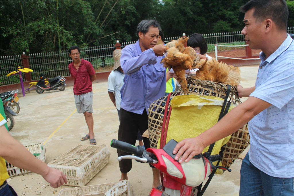 當天上午,運送雞苗的貨車從欽州市出發(fā),經過1個小時的行程來到了靈山縣伯勞鎮(zhèn)新禾村公共服務中心,此時,貧困戶們已經滿心歡喜地到來,攜帶裝雞苗的籠子耐心等候著?,F場,集團公司副總經理楊新棟在工作人員的協(xié)助下,依次給貧困戶們發(fā)放了雞苗,楊新棟笑著對貧困戶說到:“大家領取到的雞苗平均每只重600克左右,雞苗在運出養(yǎng)殖場之前都已閹割過了,具有生長發(fā)育快、抗病能力強、成活率高、市場效益好等特點,大家回去后要管護好雞苗,讓扶貧雞真正為大家?guī)砻撠毾M?rdquo;,看著一只只活潑亂跳、帶著脫貧希望的雞苗裝進了自家的籠子里,貧困戶們笑得合不攏嘴,心里樂開了花。