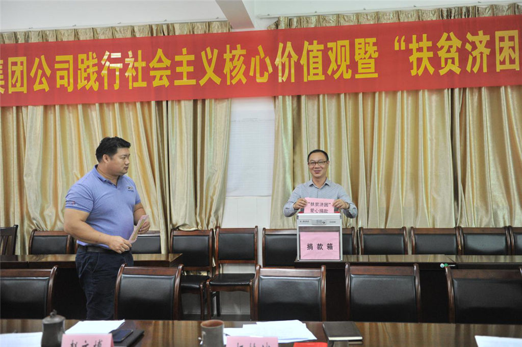 圖為集團(tuán)公司組織召開扶貧政策知識(shí)學(xué)習(xí)專題會(huì) 2018年10月17日是我國(guó)第5個(gè)扶貧日,也是第26個(gè)國(guó)際消除貧困日。為積極響應(yīng)扶貧號(hào)召,集團(tuán)公司圍繞欽州市2018年扶貧日活動(dòng)主題及活動(dòng)方案,開展了集團(tuán)公司社會(huì)主義核心價(jià)值觀暨“扶貧濟(jì)困”系列活動(dòng)。 10月19日上午,集團(tuán)公司組織幫扶干部和各部室負(fù)責(zé)人召開了扶貧政策知識(shí)學(xué)習(xí)專題會(huì),會(huì)上共同學(xué)習(xí)了《自治區(qū)扶貧開發(fā)領(lǐng)導(dǎo)小組關(guān)于調(diào)整我區(qū)扶貧對(duì)象脫貧摘帽標(biāo)準(zhǔn)的通知》(桂扶領(lǐng)發(fā)〔2018〕13號(hào))、《2018年廣西雨露計(jì)劃扶貧培訓(xùn)政策宣傳單》、《關(guān)于轉(zhuǎn)發(fā)〈靈山縣貧困戶以獎(jiǎng)代補(bǔ)特色產(chǎn)業(yè)扶貧實(shí)施辦法〉的通知》(靈開辦發(fā)〔2018〕9號(hào))等文件,讓每個(gè)幫扶干部熟練掌握相關(guān)扶貧政策,促進(jìn)幫扶干部政策理解和知識(shí)吸收,增強(qiáng)運(yùn)用政策和轉(zhuǎn)化政策的能力,最大限度推動(dòng)扶貧政策落地見效。 會(huì)后,立即開展了“扶貧濟(jì)困,扶弱助貧”捐贈(zèng)活動(dòng),集團(tuán)公司發(fā)動(dòng)黨員、干部、職工自愿參與扶貧捐贈(zèng)活動(dòng),呼吁全體職工參與到“全國(guó)扶貧日”這項(xiàng)意義深遠(yuǎn)的活動(dòng)中來(lái)。活動(dòng)中,集團(tuán)公司主要領(lǐng)導(dǎo)帶頭捐款,干部職工都積極響應(yīng),當(dāng)天籌集到的愛心捐款共計(jì)¥8040.00元(人民幣捌仟零肆拾元整),所籌集的捐款將用于公司定點(diǎn)幫扶貧困村、貧困戶的生產(chǎn)生活條件改善、產(chǎn)業(yè)發(fā)展或發(fā)展村集體經(jīng)濟(jì)。 圖為集團(tuán)公司董事長(zhǎng)趙文博帶頭捐款 圖為集團(tuán)公司黨員干部積極響應(yīng)捐款號(hào)召
