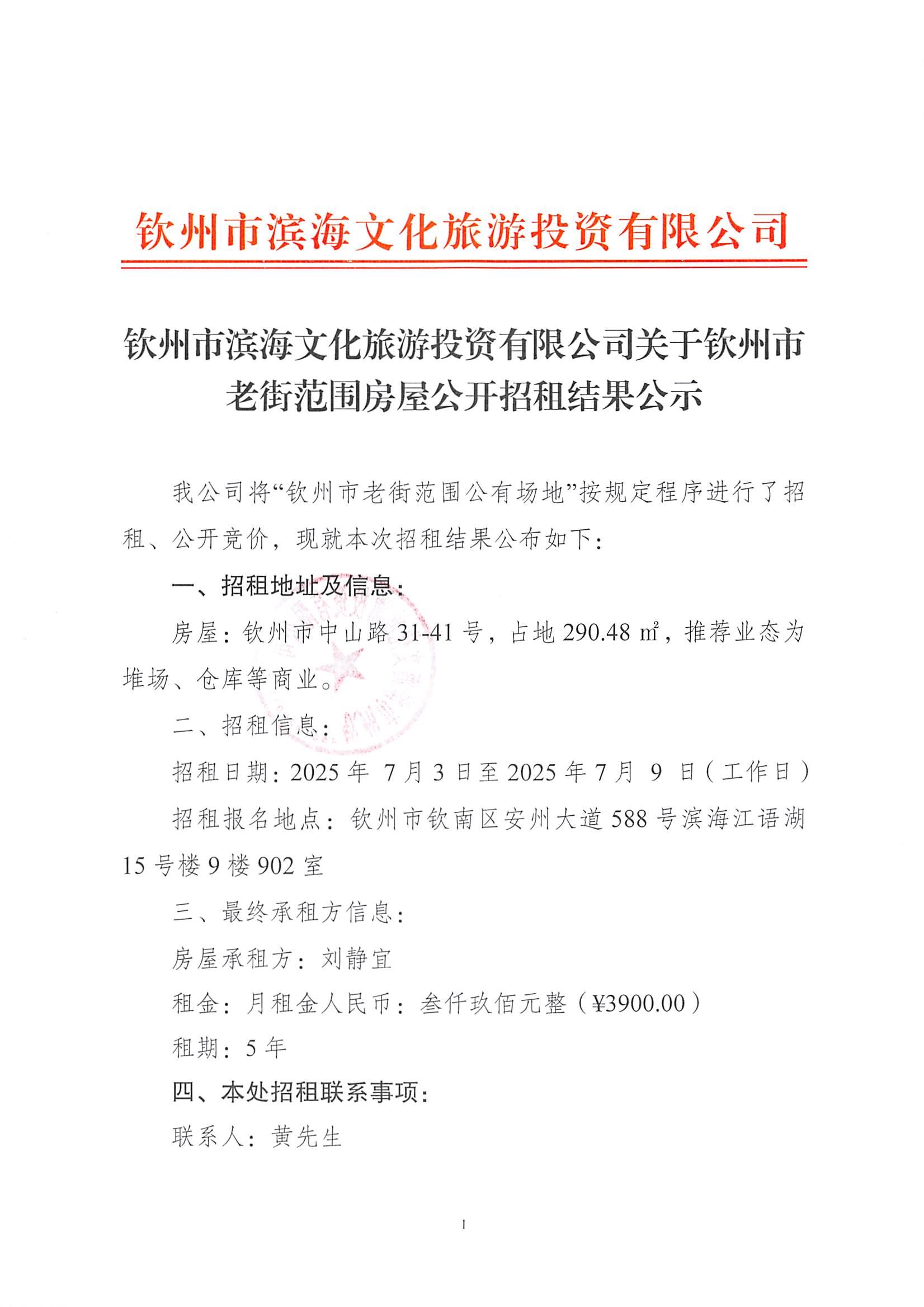 欽州市老街范圍房屋公開招租結(jié)果公示(中山路31-41號)