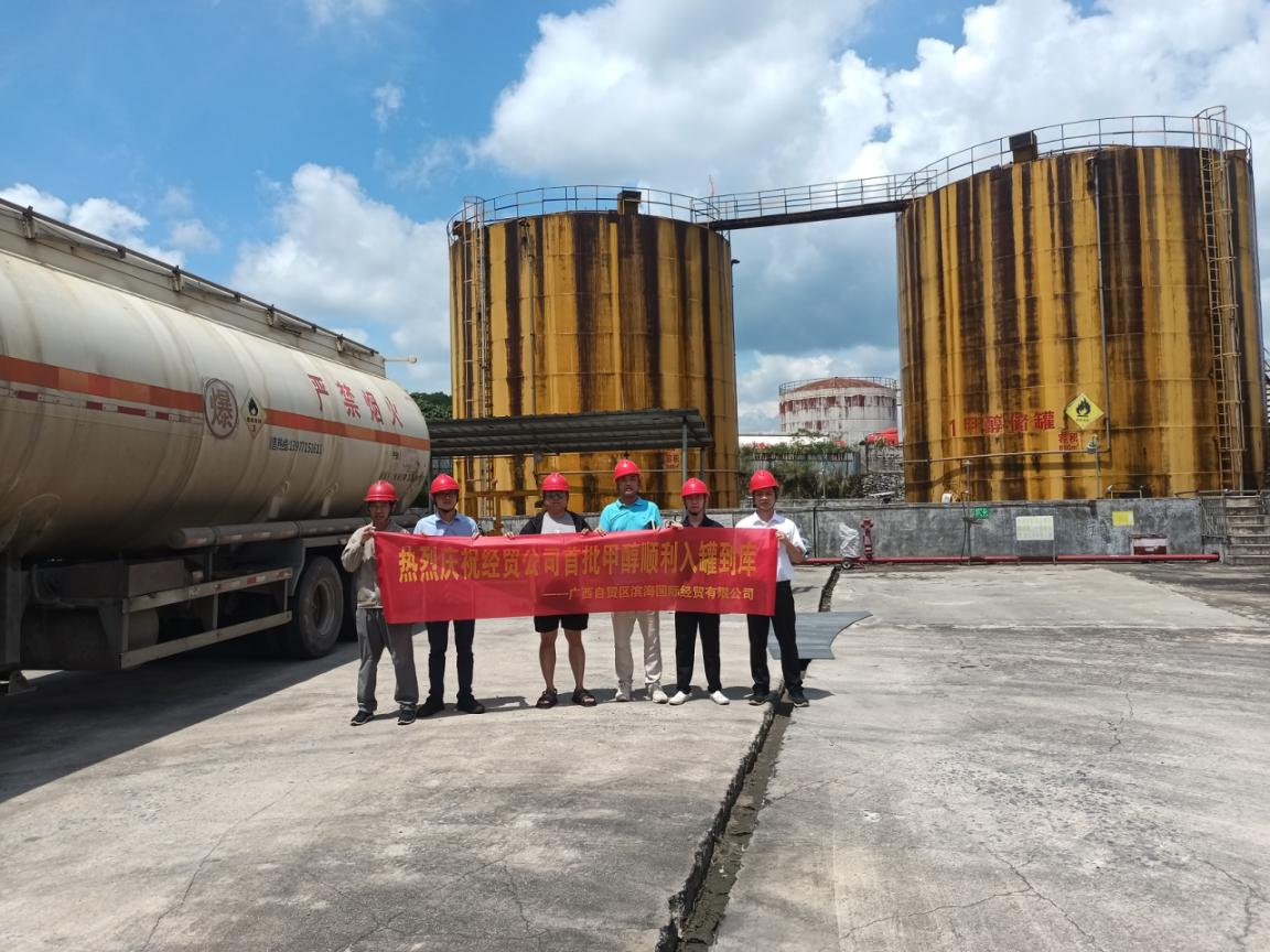 廣西自貿(mào)區(qū)濱海國際經(jīng)貿(mào)有限公司與上海華誼集團(tuán)廣西工廠合作開展的首批甲醇貿(mào)易于2024年6月20日順利入罐到庫。