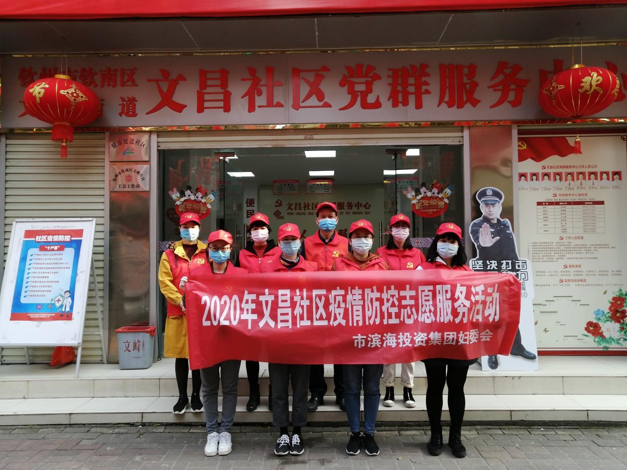 2020年2月22日上午,欽州市濱海新城投資集團有限公司婦委會副主任劉麗帶領婦委委員到文昌社區(qū)開展疫情防控志愿服務。