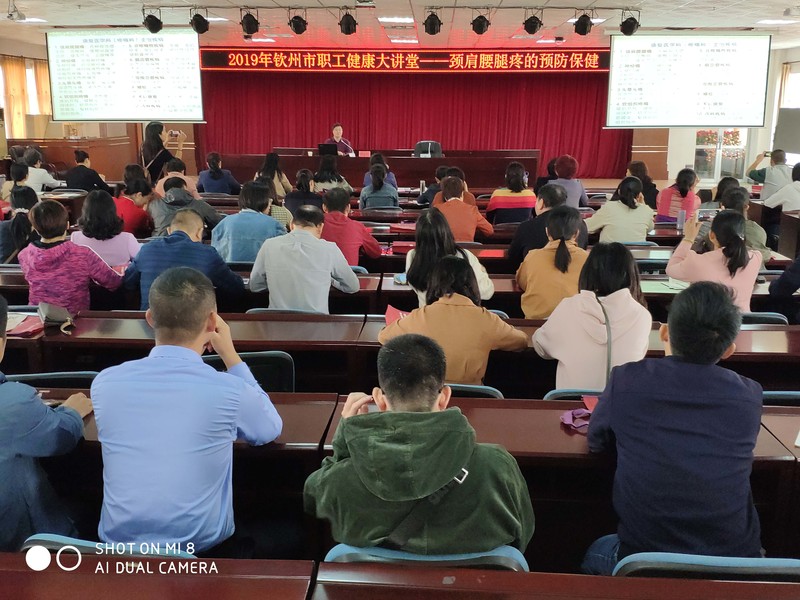 2019年11月14日上午,我集團(tuán)公司組織職工參加市總工會(huì)、市健康教育中心舉辦的“頸肩腰腿疼的預(yù)防保健”的職工健康知識(shí)公益講座,講座由欽州市中醫(yī)醫(yī)院康復(fù)醫(yī)學(xué)科主任、醫(yī)學(xué)博士、副主任醫(yī)師鐘志年主講。鐘主任通過(guò)視頻講解、現(xiàn)場(chǎng)示范,為大家傳授頸肩腰腿疼的預(yù)防保健知識(shí),全體參加人員踴躍參與預(yù)防保健鍛煉動(dòng)作的互動(dòng)。