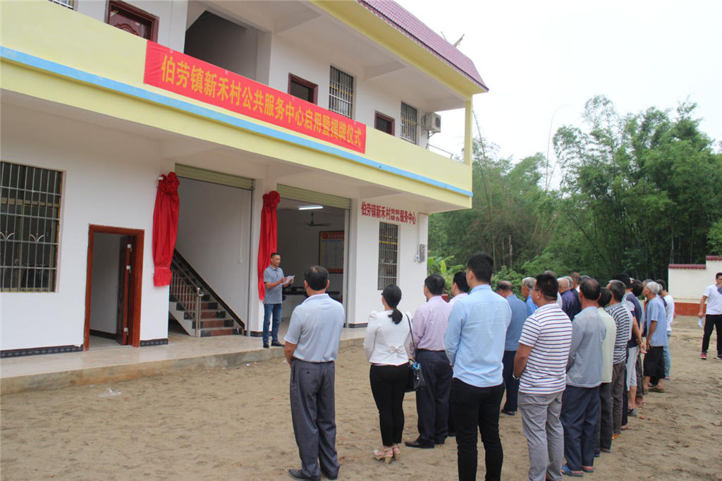 2018年4月28日上午,集團公司扶貧幫扶聯(lián)系村——靈山縣伯勞鎮(zhèn)新禾村在新公共服務中心舉行揭牌儀式。我集團公司和伯勞鎮(zhèn)人民政府、市檔案局、市林科所主要領導及駐村第一書記、包村工作組、村委全體成員齊聚新公共服務中心大樓前,共同見證新禾村新公共服務中心大樓揭牌儀式。