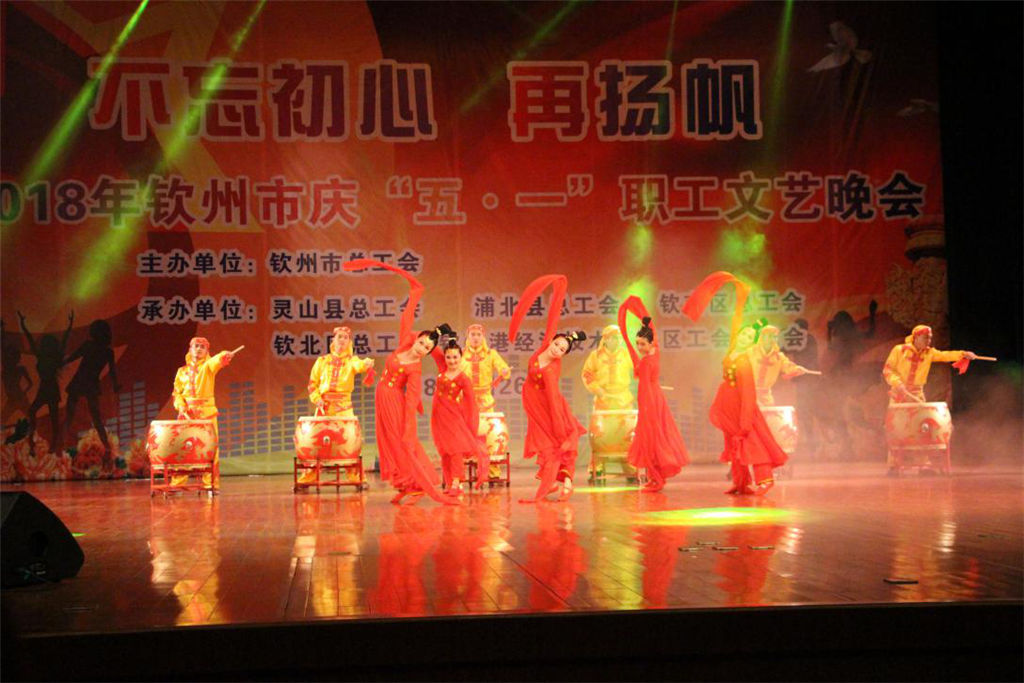 4月26日,市總工會在市文化藝術中心舉行“不忘初心,再揚帆”2018年欽州市慶“五一”職工文藝晚會,我集團公司選送節(jié)目《鼓動開篇》,雄壯的鼓聲和優(yōu)美的舞姿,贏得現(xiàn)場觀眾陣陣掌聲。