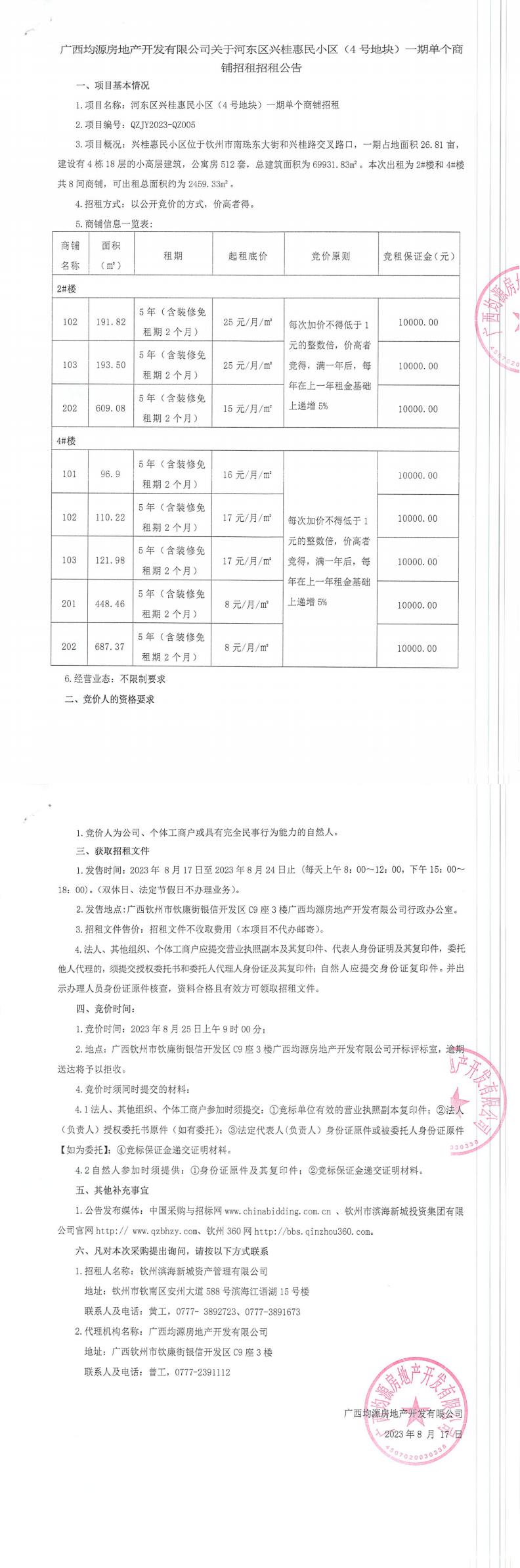 關(guān)于興桂惠民小區(qū)(4號(hào)地塊)二期商鋪招租公告