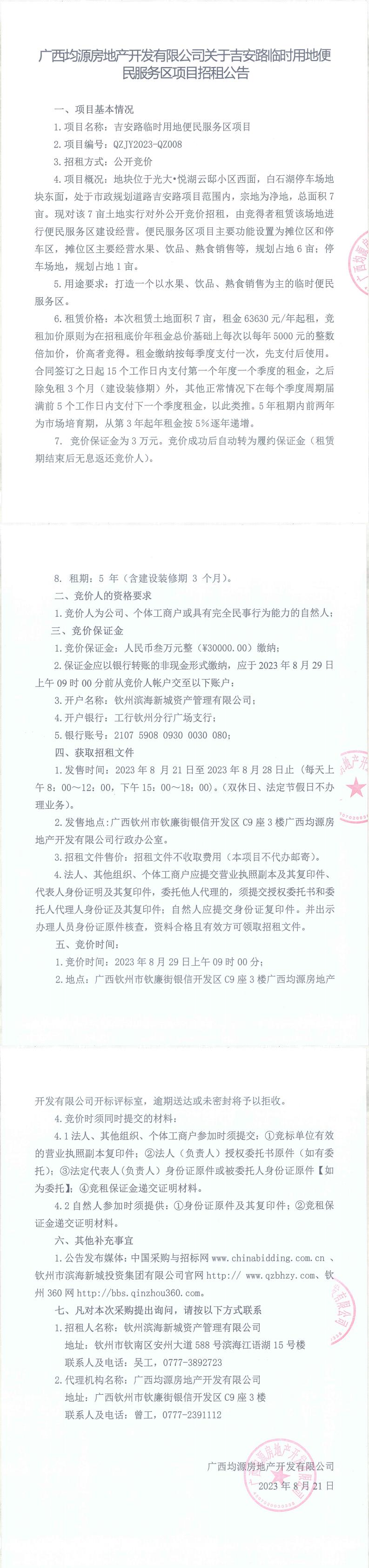 吉安路臨時(shí)用地便民服務(wù)區(qū)項(xiàng)目招租公告