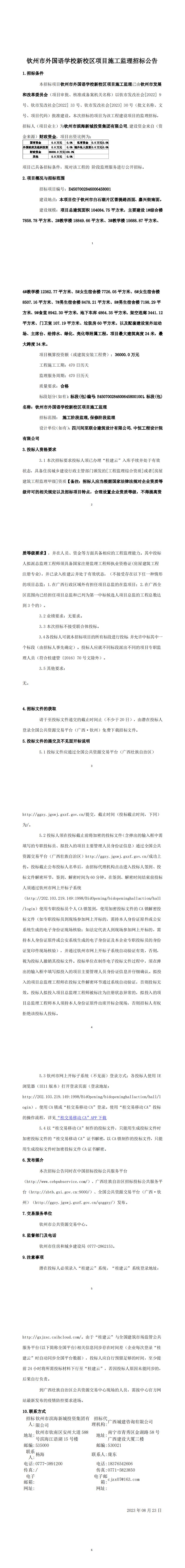 欽州市外國(guó)語(yǔ)學(xué)校新校區(qū)項(xiàng)目施工監(jiān)理招標(biāo)公告