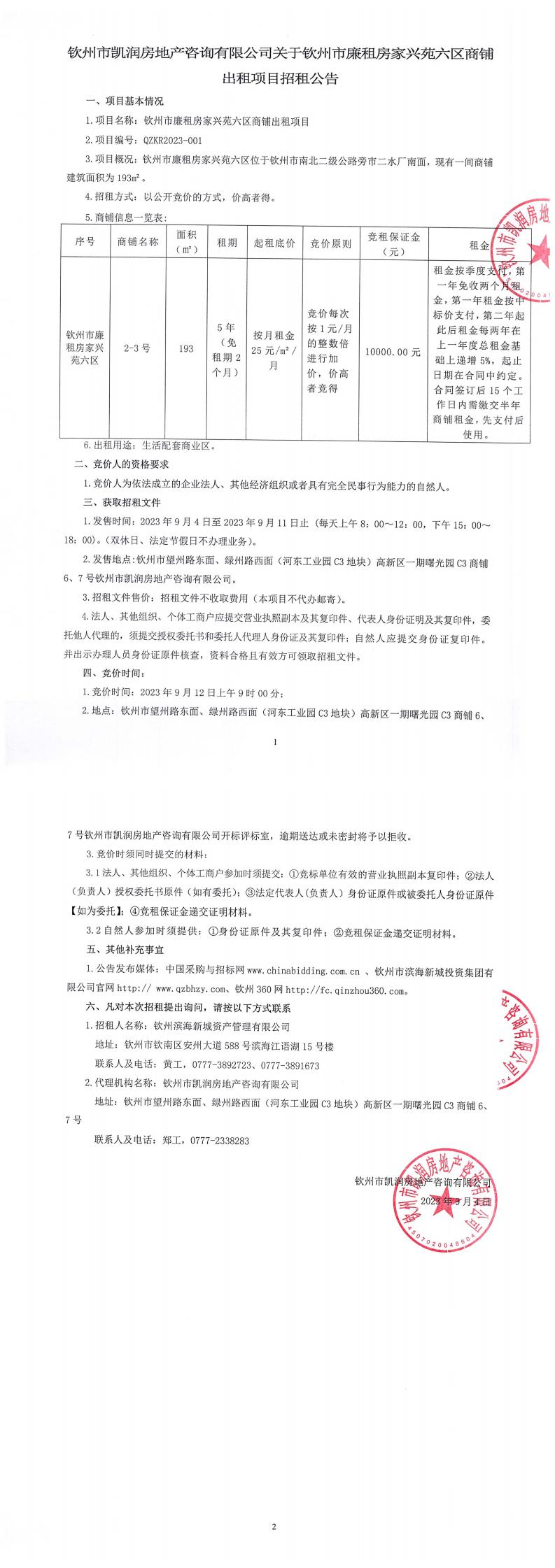 關(guān)于欽州市廉租房家興苑七區(qū)、安惠二園商鋪出租項(xiàng)目招租公告
