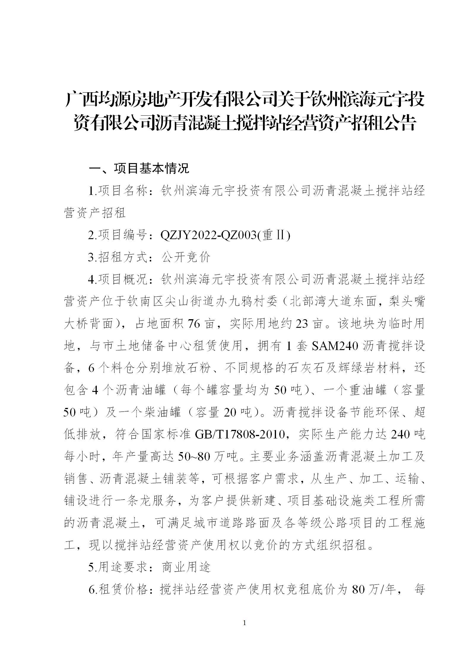 廣西均源房地產(chǎn)開發(fā)有限公司關(guān)于欽州濱海元宇投資有限公司瀝青混凝土攪拌站經(jīng)營資產(chǎn)招租公告