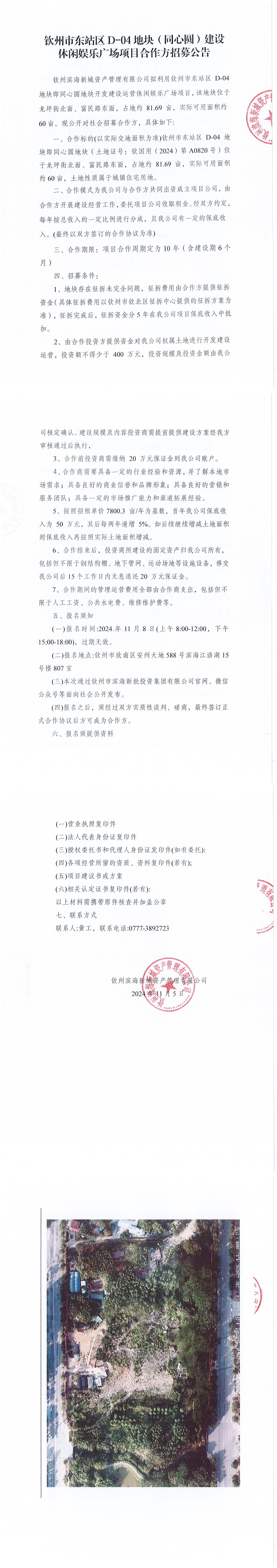 欽州市東站區(qū)D-04地塊(同心圓)建設(shè)休閑娛樂廣場項目合作方招募公告